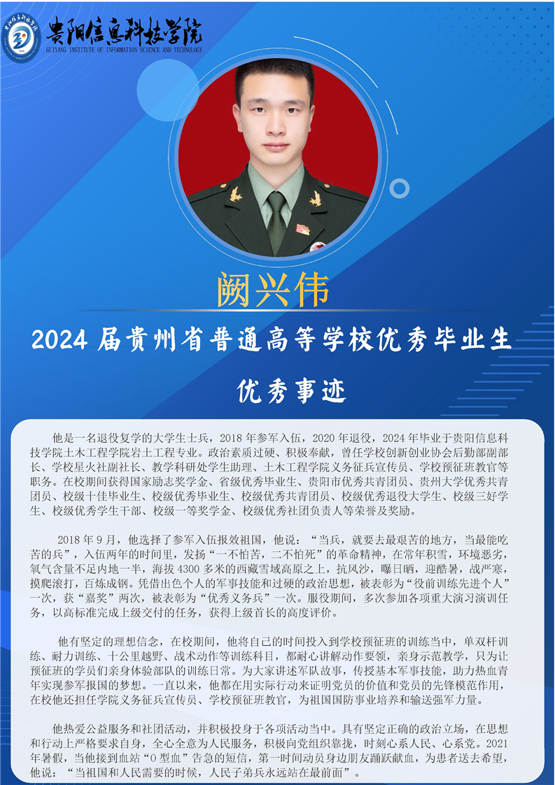 【阙兴伟】2024届贵州省普通高等学校优秀毕业生个人事迹