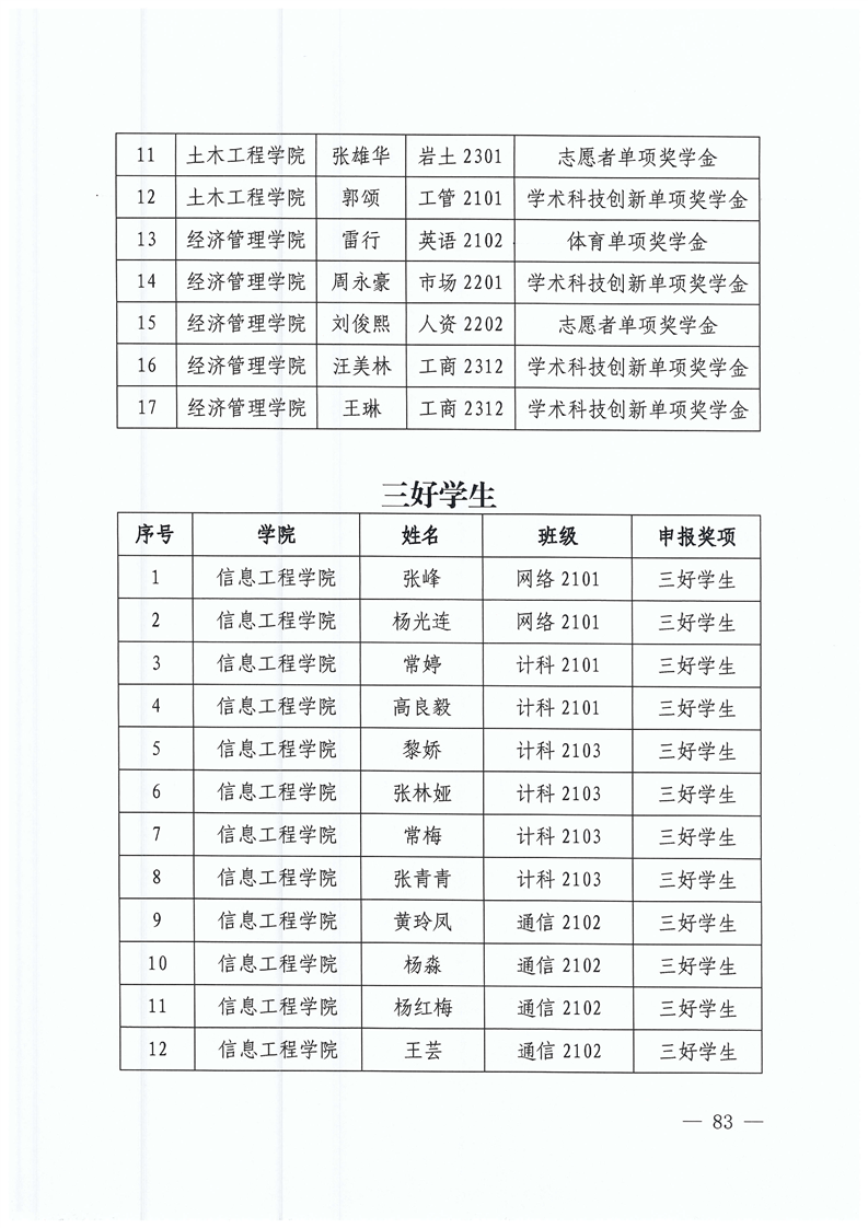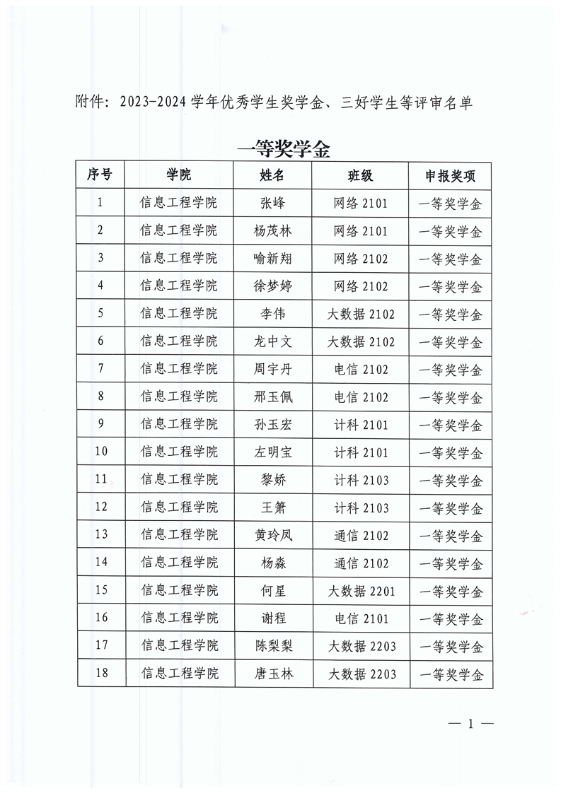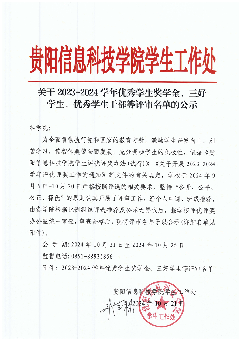 贵阳信息科技学院关于2023-2024学年优秀学生奖学金、三好、优干等评审名单的公示