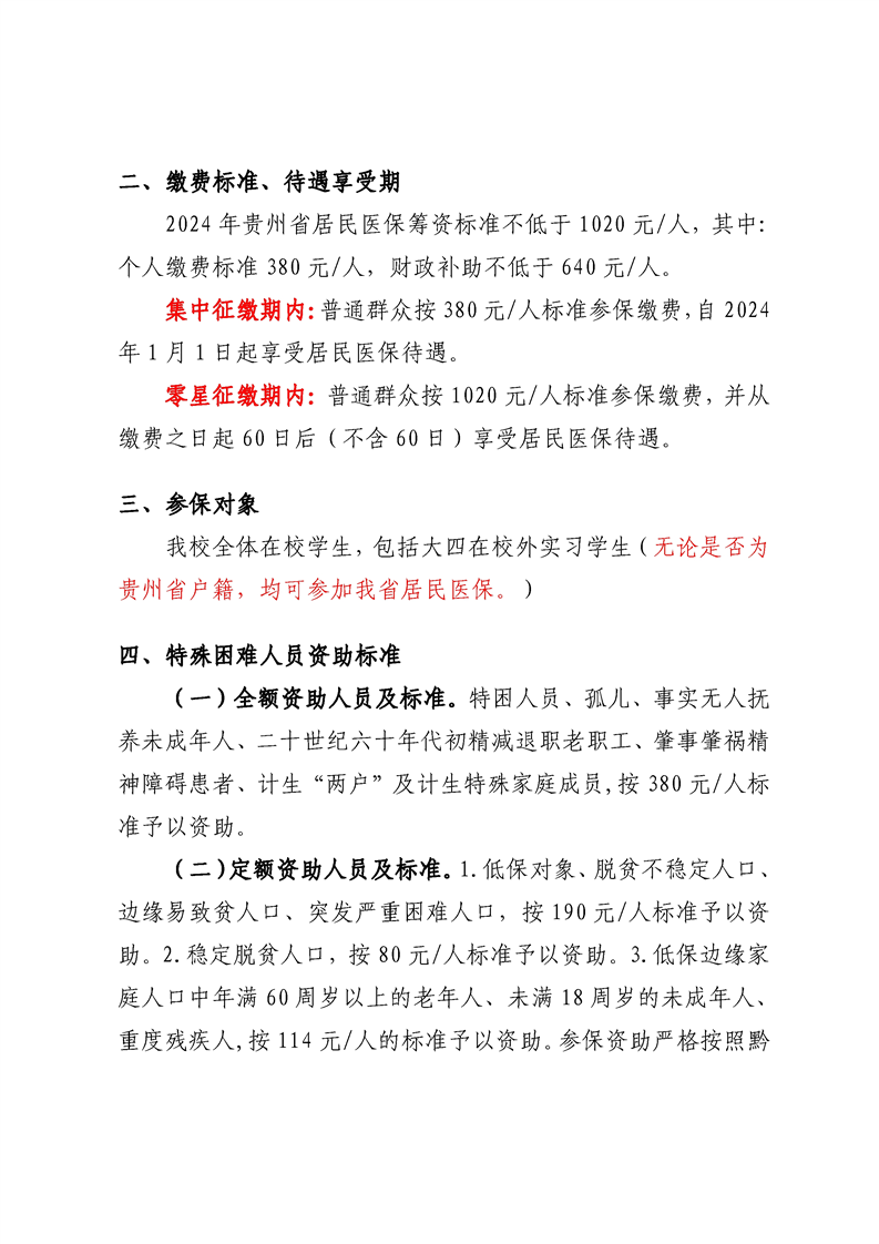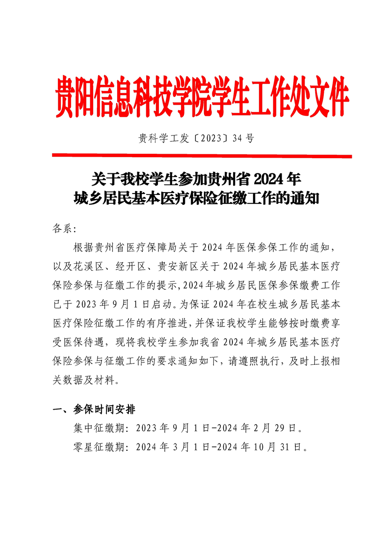 关于我校学生参加贵州省2024年城乡居民基本医疗保险征缴工作的通知