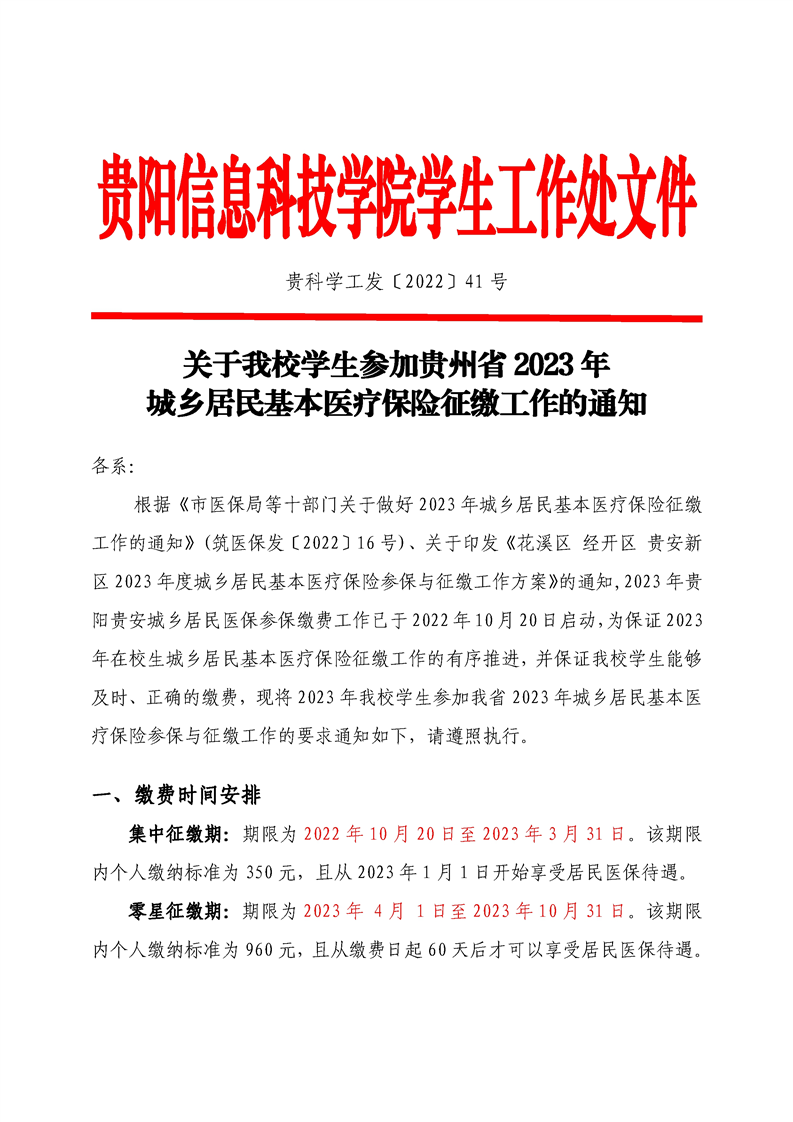 关于我校学生参加贵州省2023年城乡居民基本医疗保险征缴工作的通知