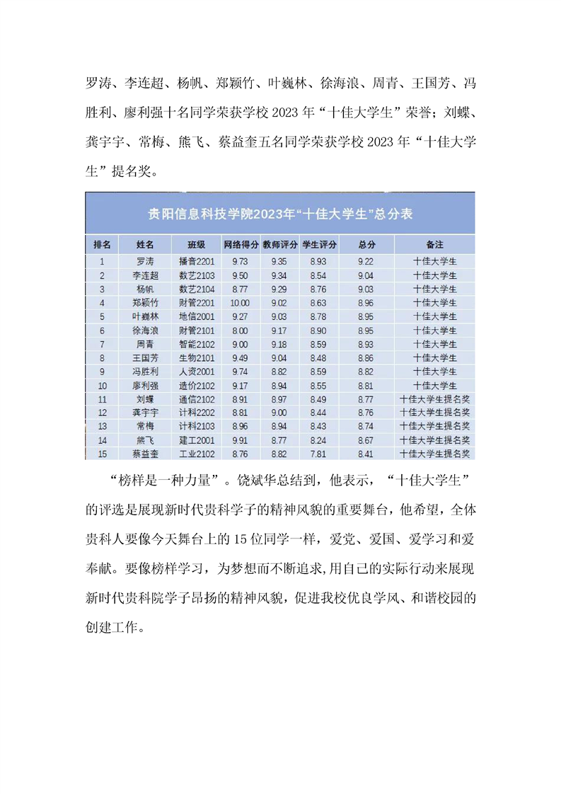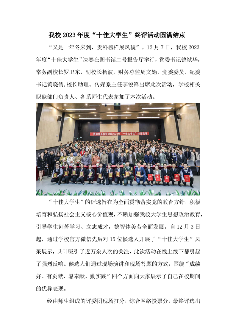 关于评选贵阳信息科技学院2023年“十佳大学生”的通知