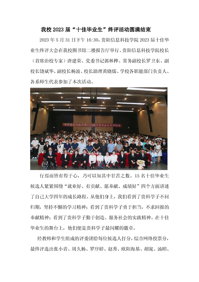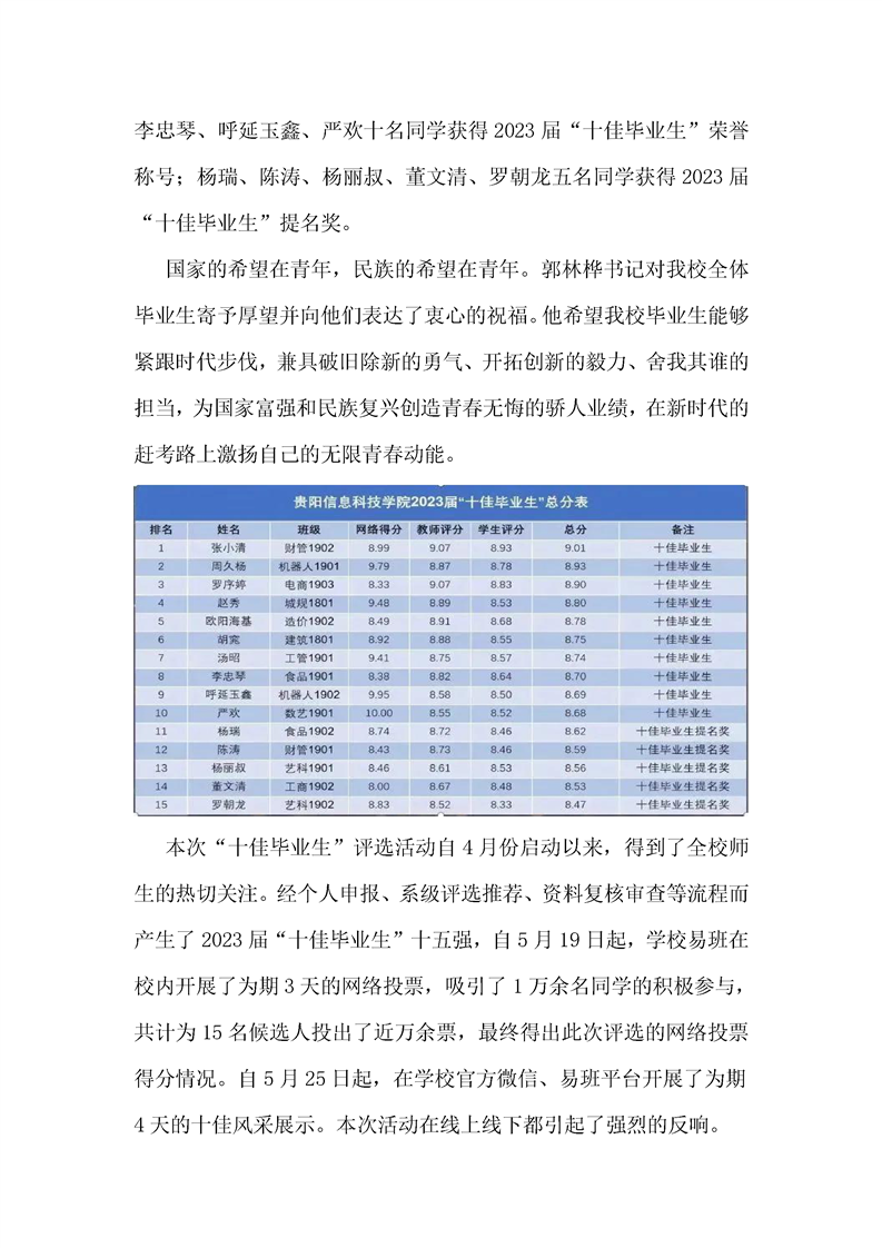 2025届贵阳信息科技学院优秀毕业生评选结果公示