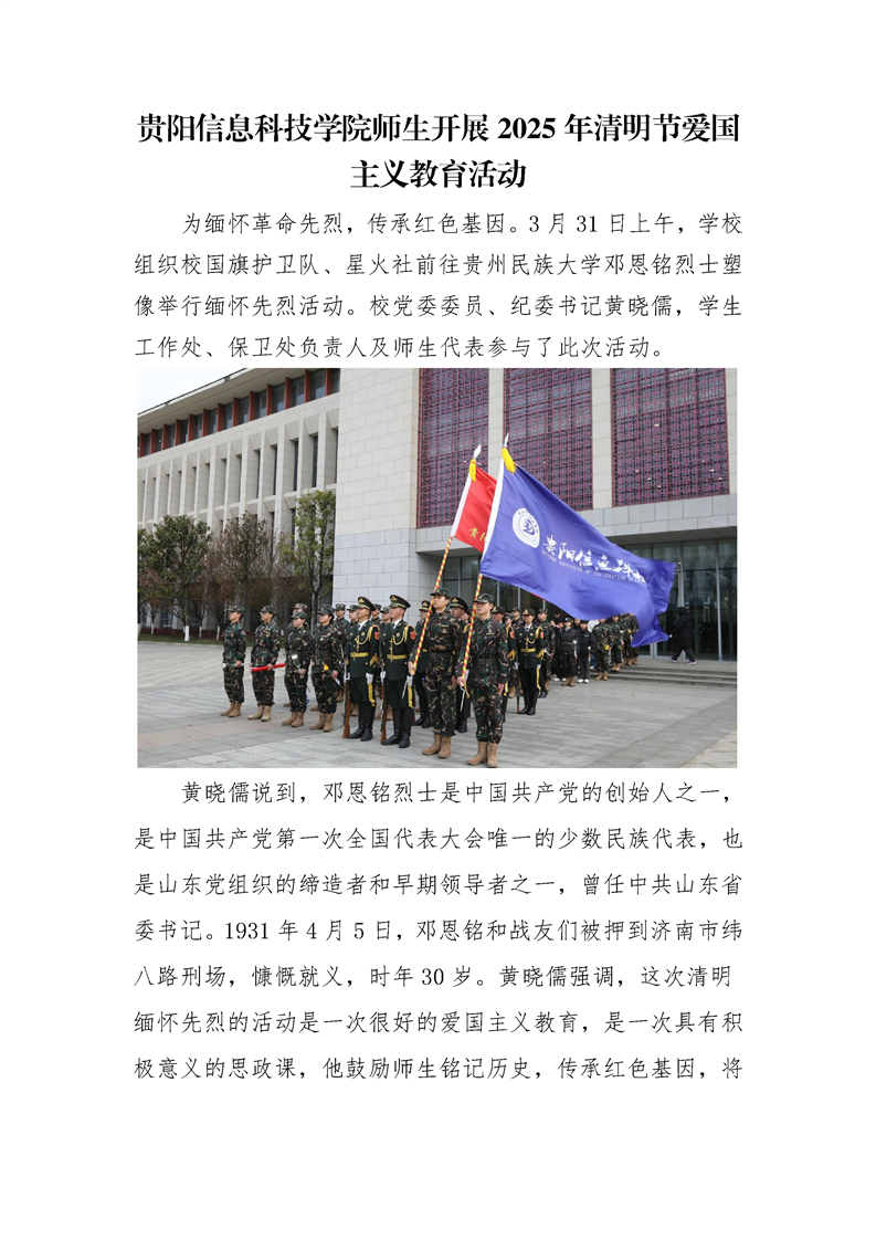 贵阳信息科技学院师生开展2025年清明节爱国主义教育活动