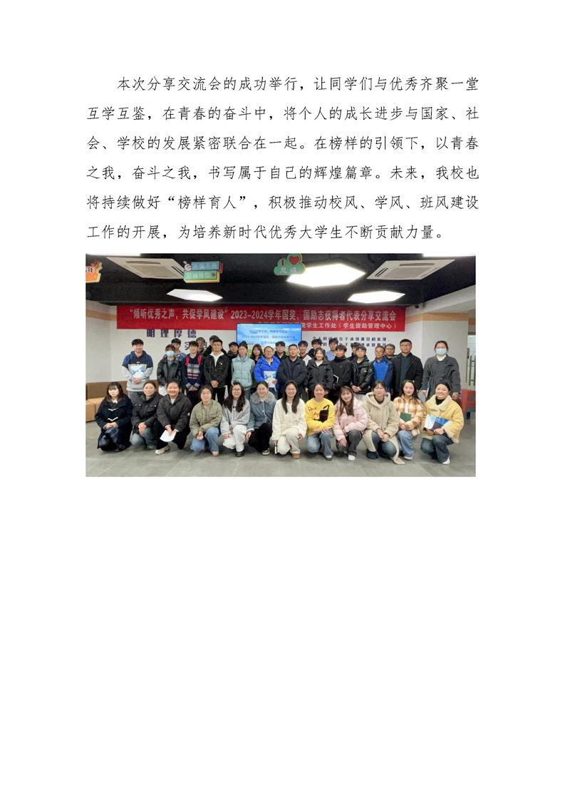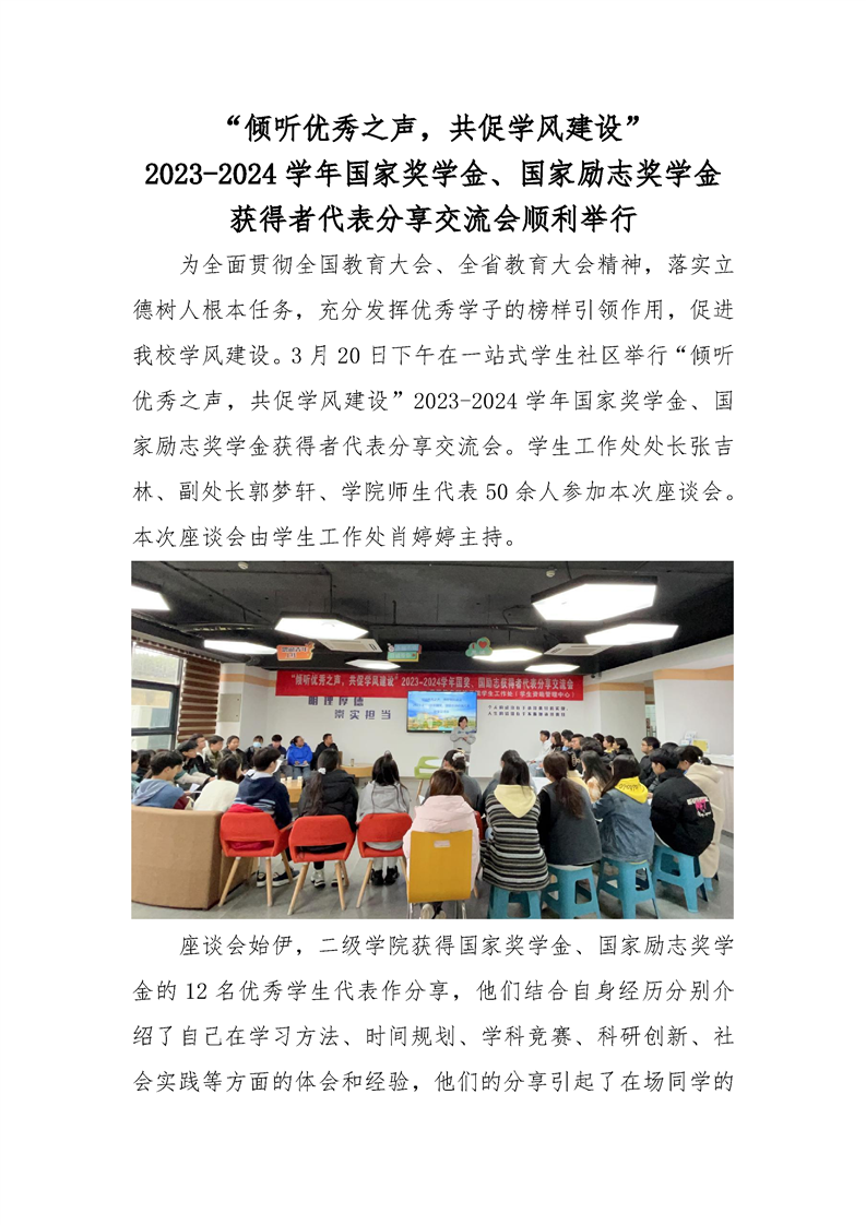 “倾听优秀之声,共促学风建设” 2023-2024学年国家奖学金、国家励志奖学金 获得者代表分享交流会顺利举行