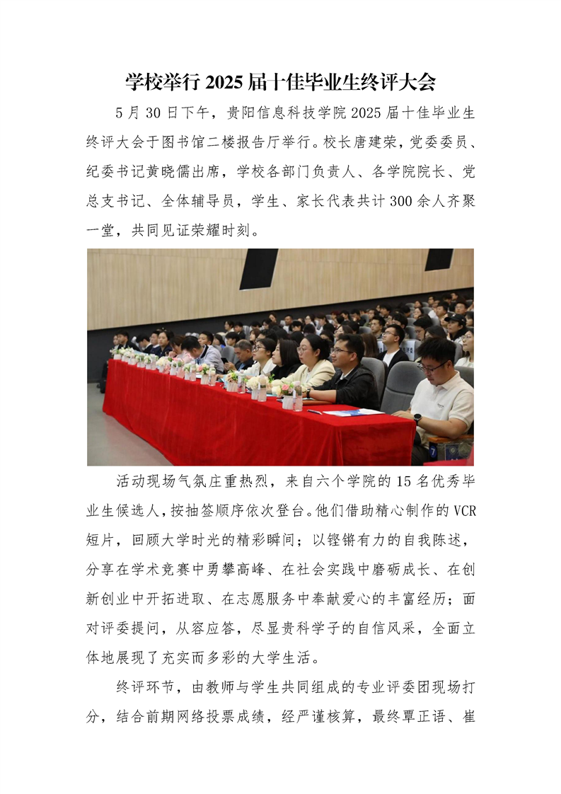 中共贵阳信息科技学院委员会关于2025届省级优秀毕业生拟推荐名单的公示