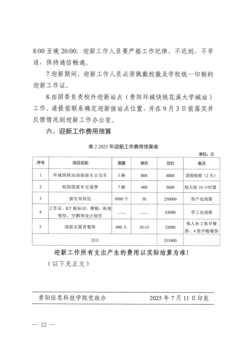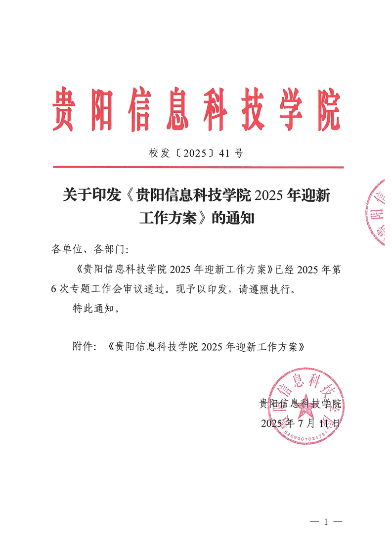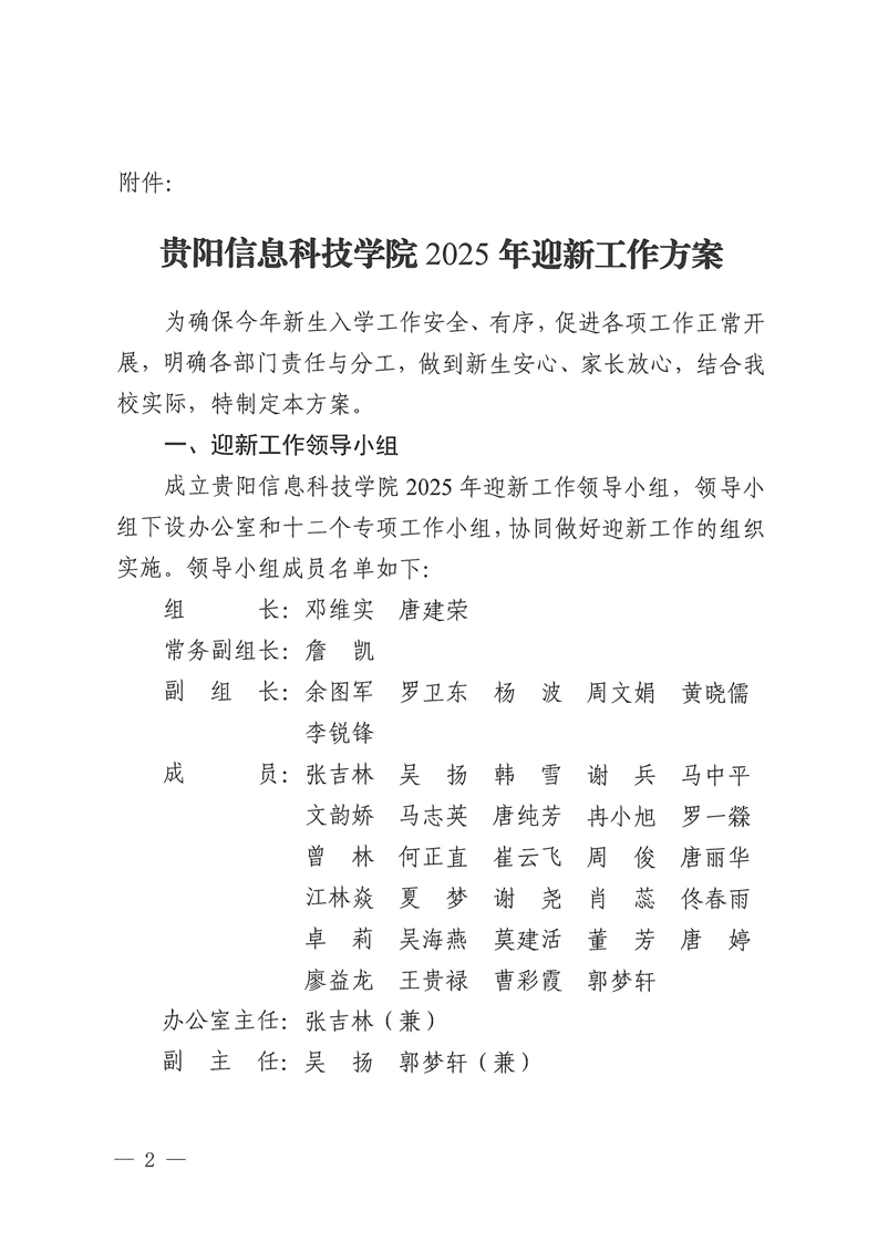 《贵阳信息科技学院2025年迎新工作方案》的通知