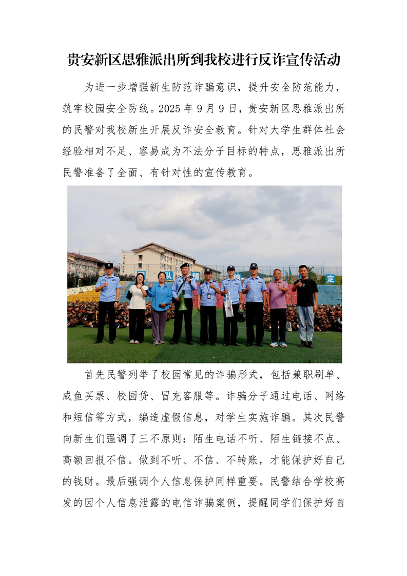 贵安新区思雅派出所到我校进行反诈宣传活动
