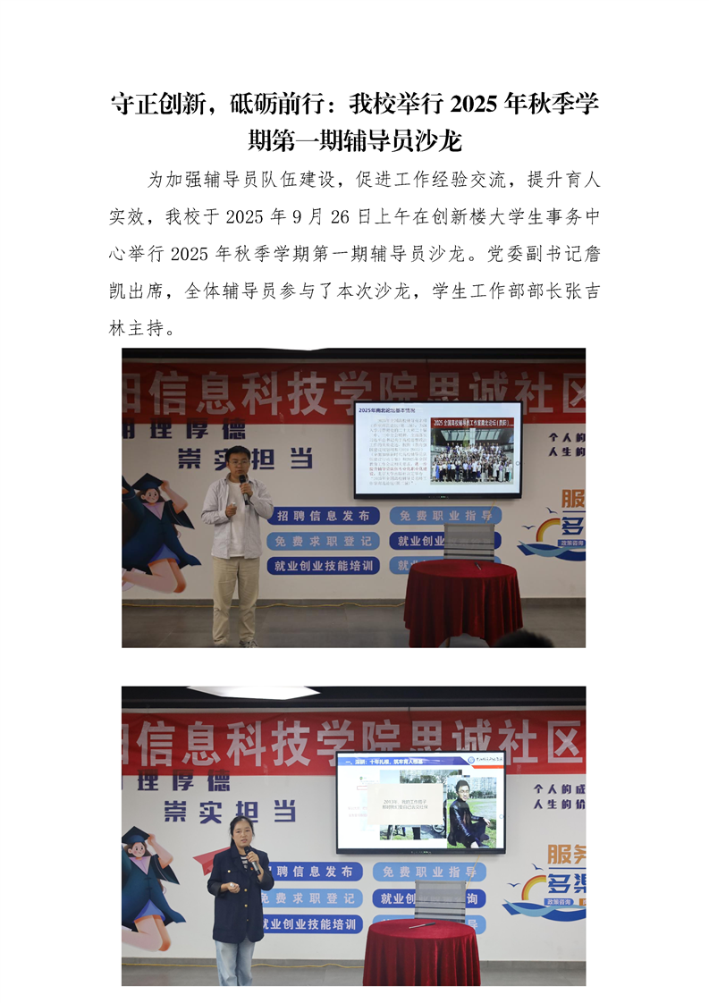 守正创新,砥砺前行:我校举行2025年秋季学期第一期辅导员沙龙