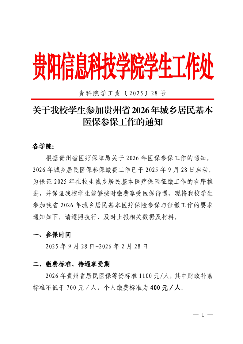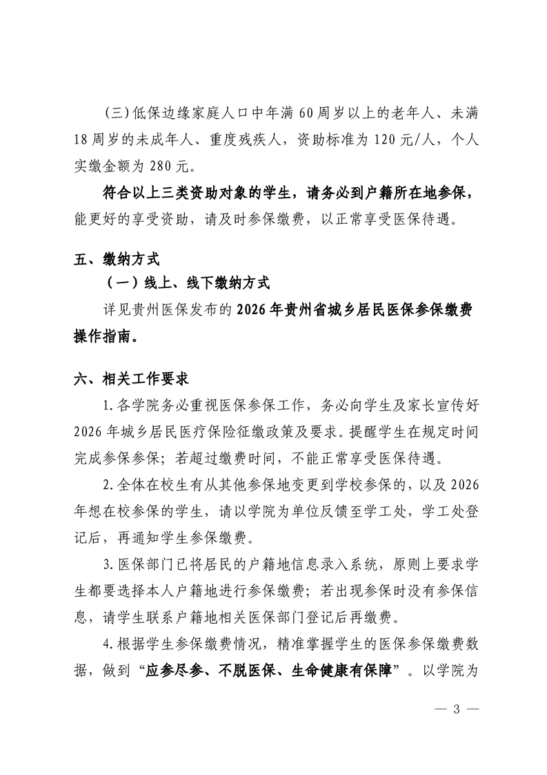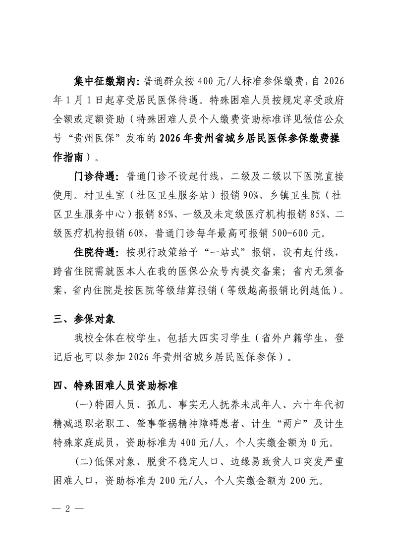 关于我校学生参加贵州省2026年城乡居民基本医保参保工作的通知