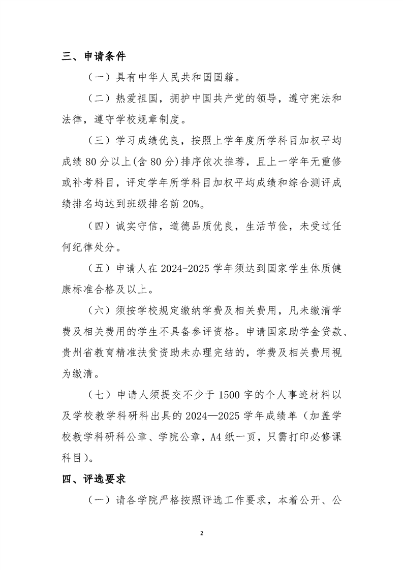 关于做好2024-2025学年度 国家奖学金评选推荐工作的通知
