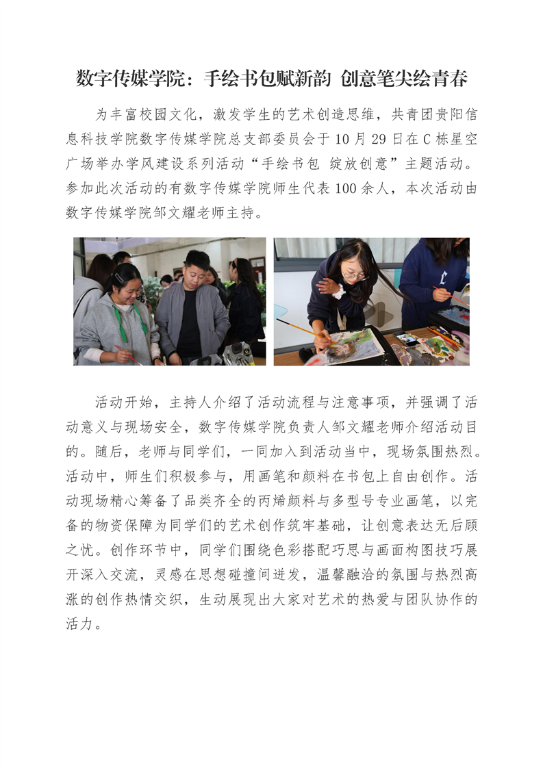 数字传媒学院:手绘书包赋新韵 创意笔尖绘青春