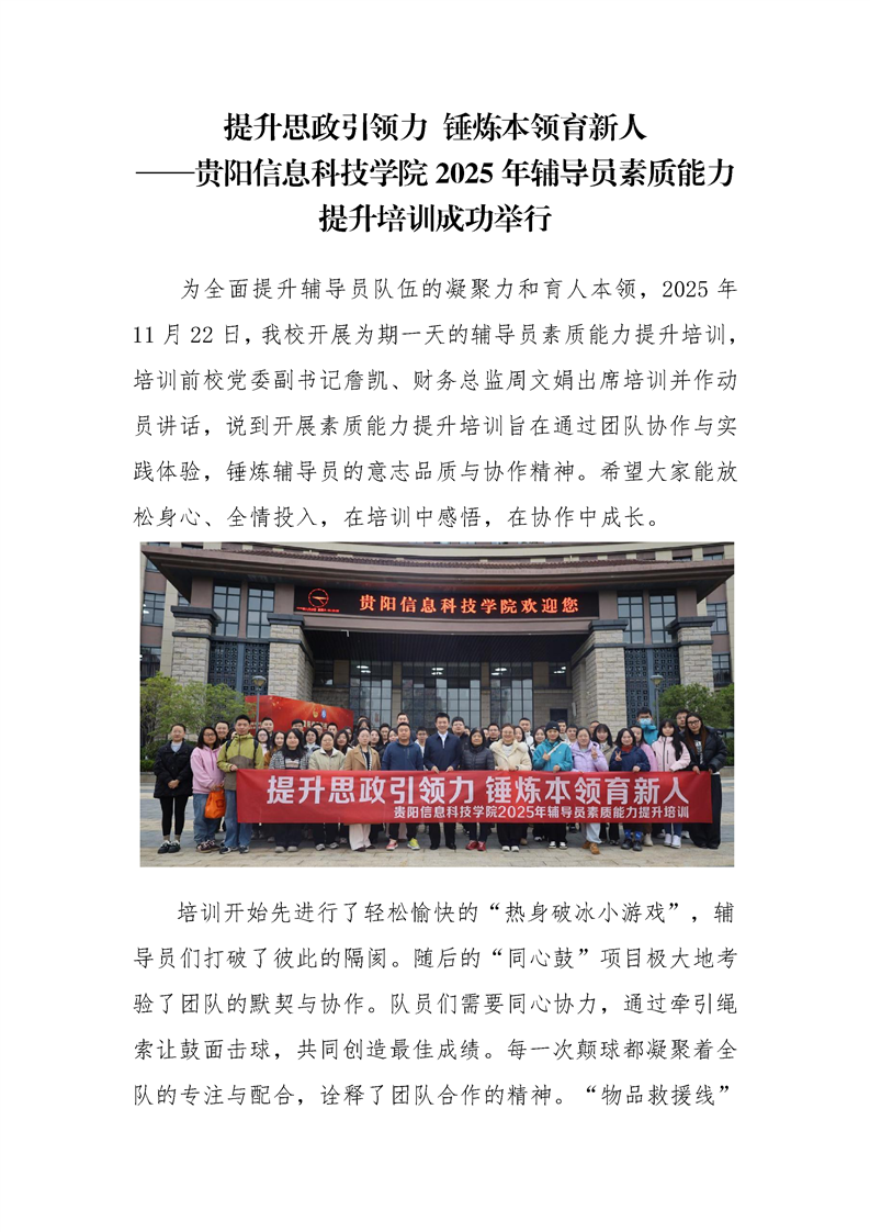 提升思政引领力 锤炼本领育新人——贵阳信息科技学院2025年辅导员素质能力提升培训成功举行
