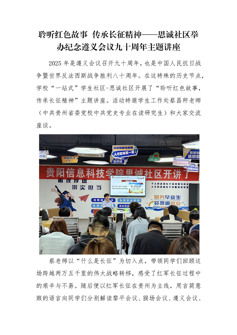 聆听红色故事 传承长征精神——思诚社区举 办纪念遵义会议九十周年主题讲座