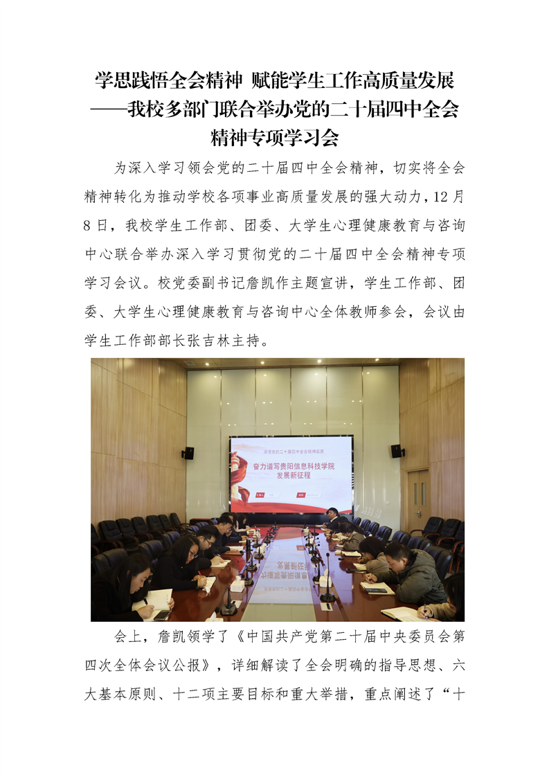 学思践悟全会精神 赋能学生工作高质量发展 ——我校多部门联合举办党的二十届四中全会 精神专项学习会