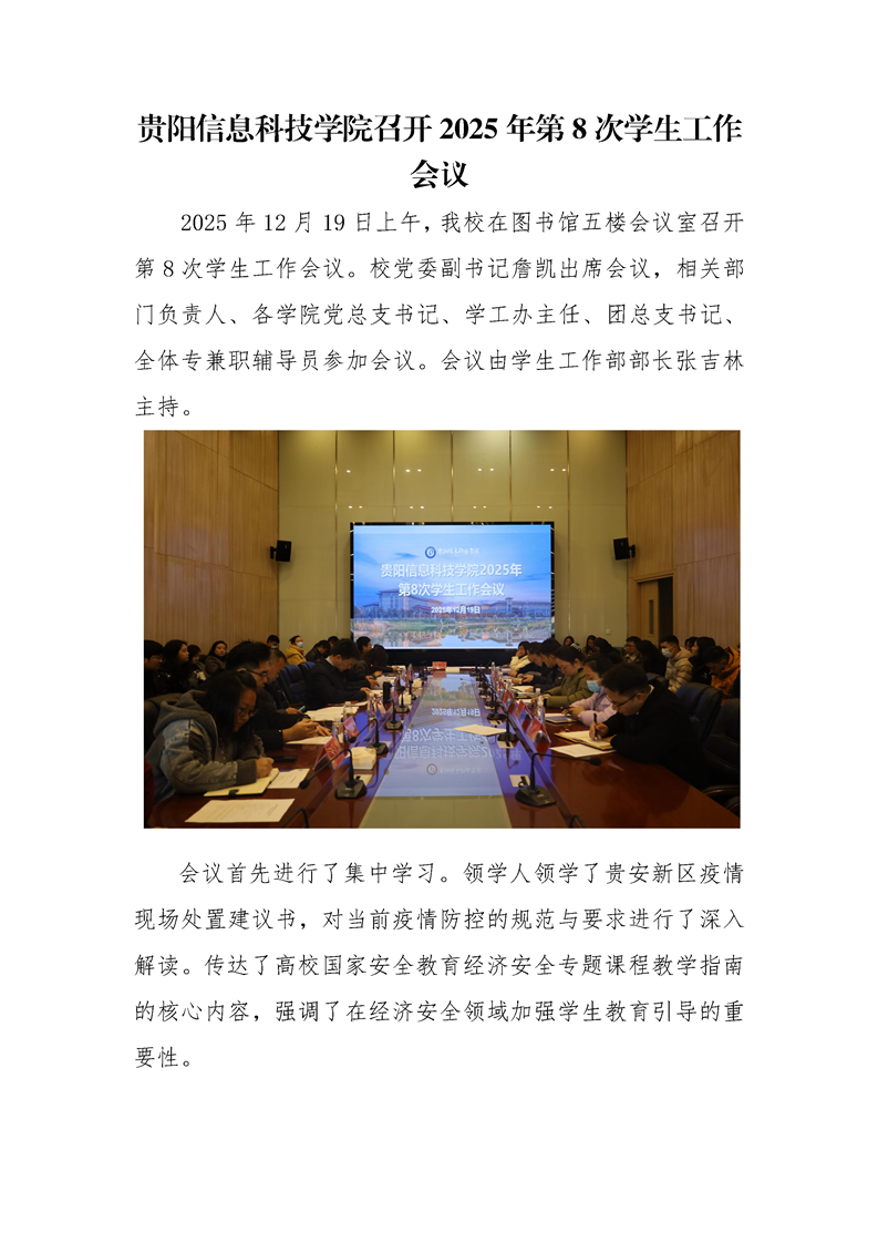 贵阳信息科技学院召开2025年第8次学生工作会议