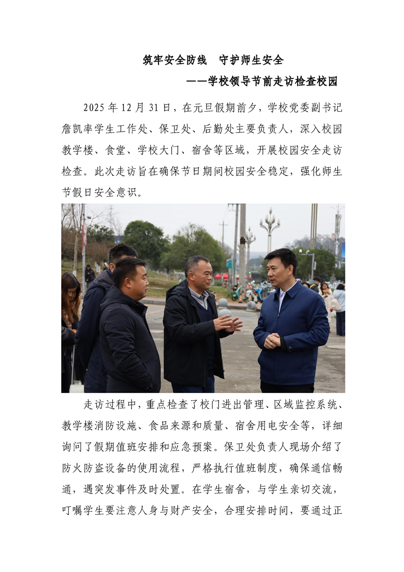 筑牢安全防线 守护师生安全——学校领导节前走访检查校园