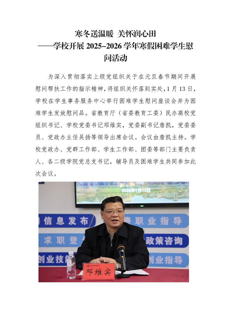 寒冬送温暖 关怀润心田 ——学校开展2025-2026学年寒假困难学生慰问活动