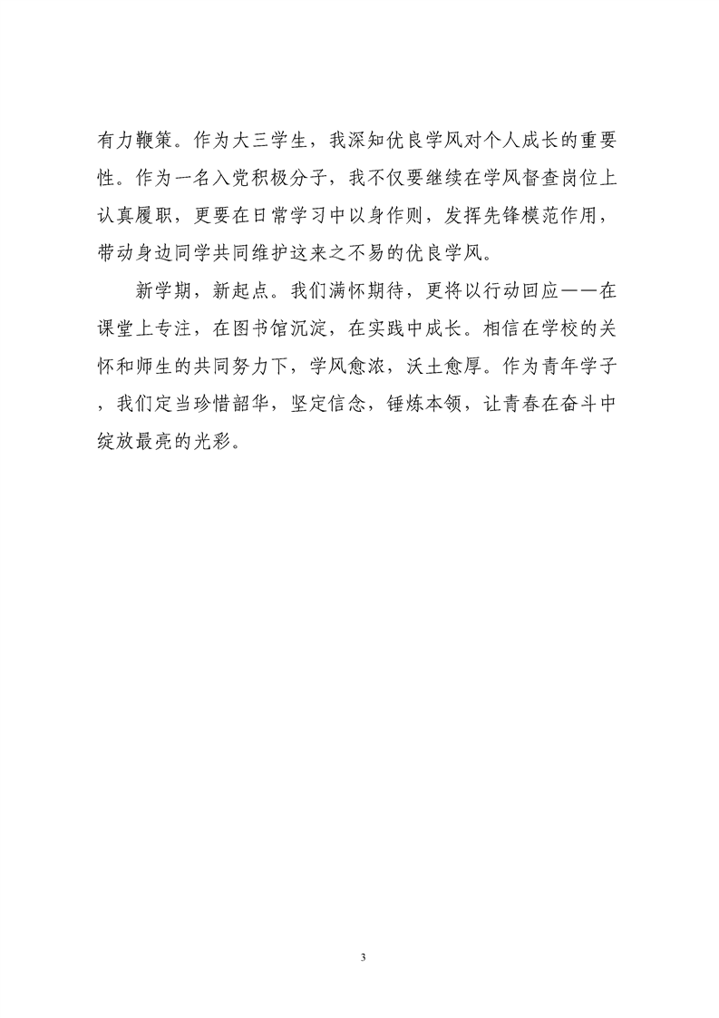 开学首日学风浓,学校巡查组慰问暖人心 —— 学风监督员的感悟