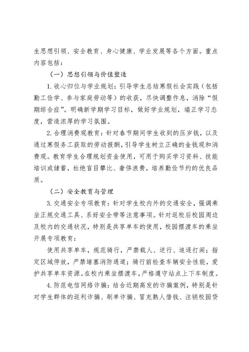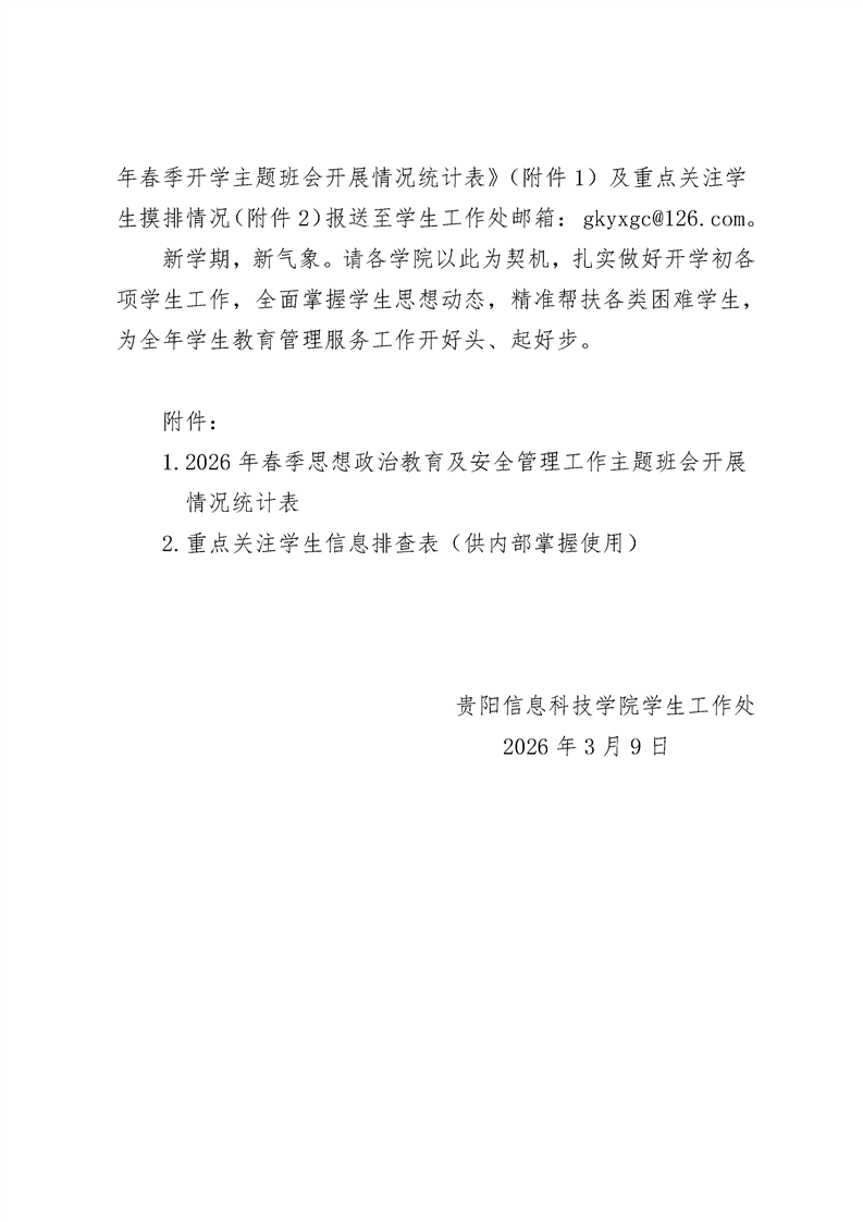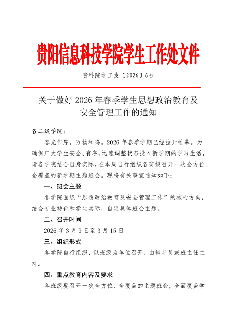 关于做好2026年春季学生思想政治教育及 安全管理工作的通知