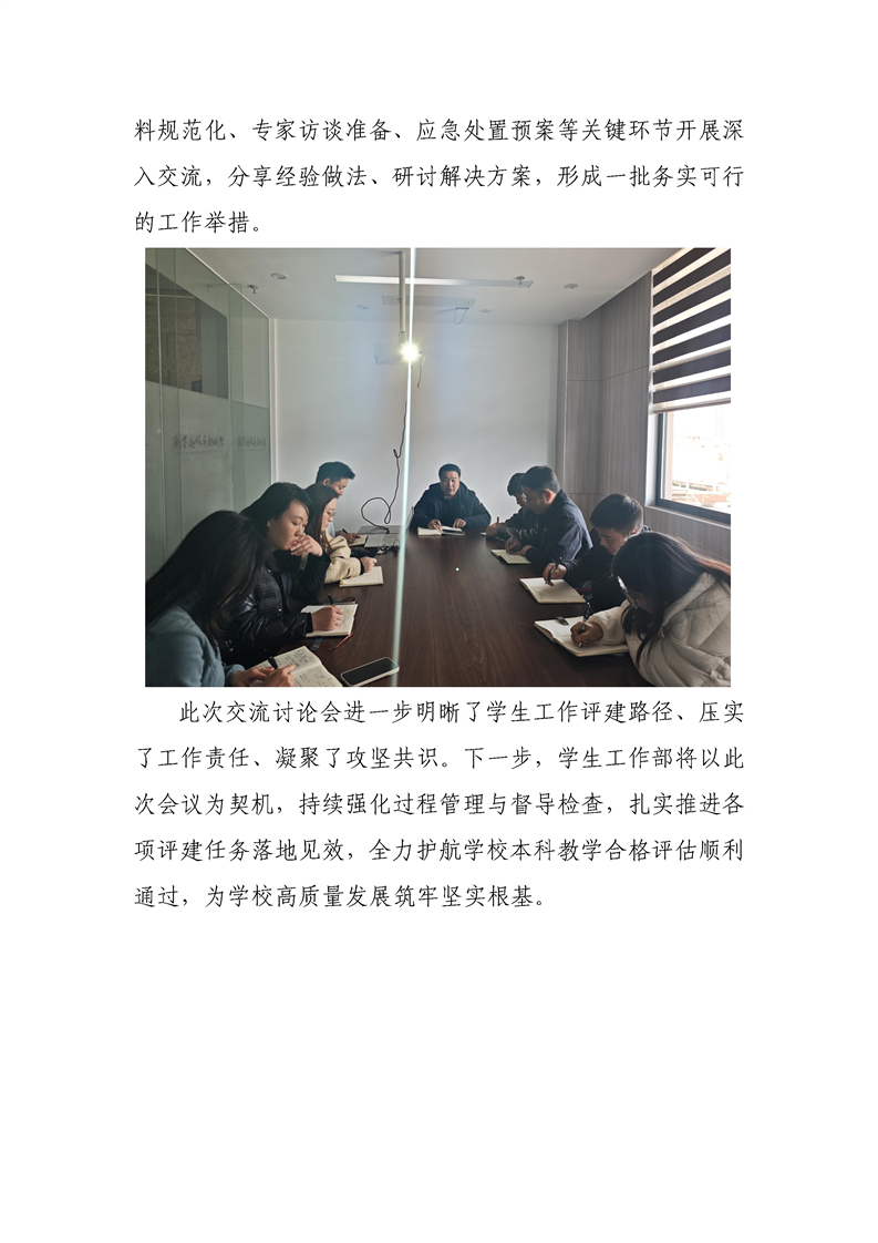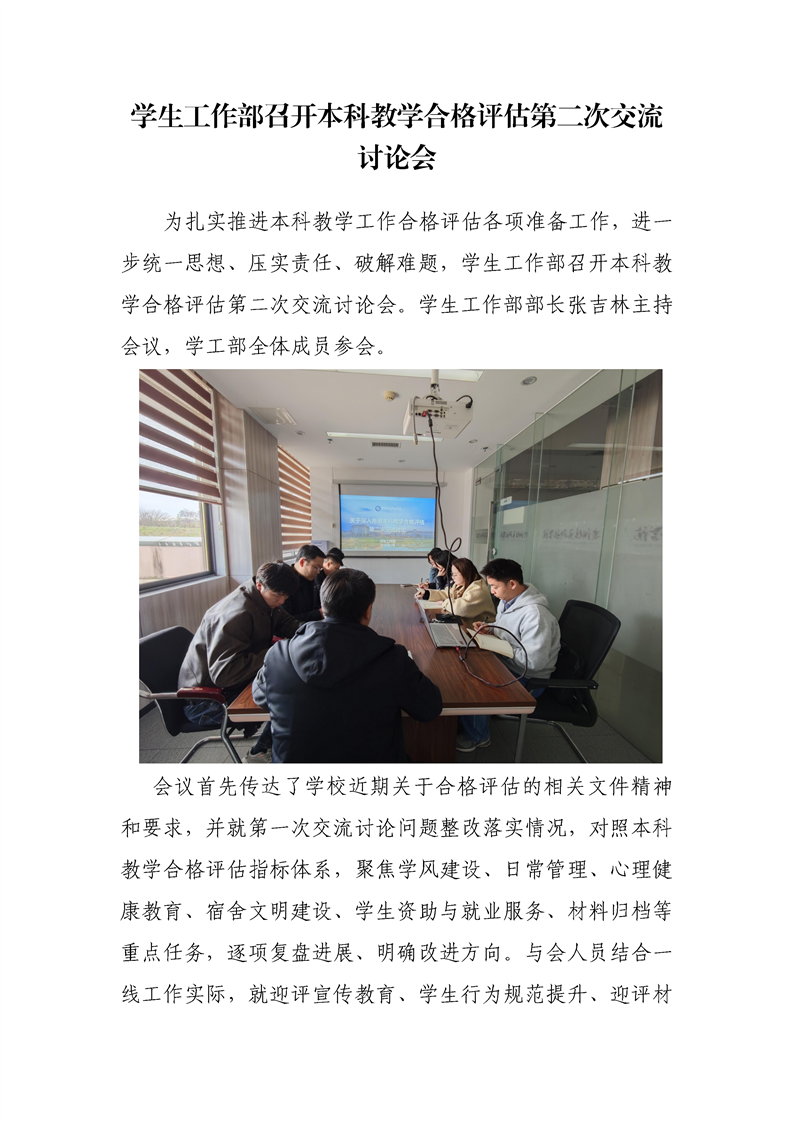 学生工作部召开本科教学合格评估第二次交流讨论会