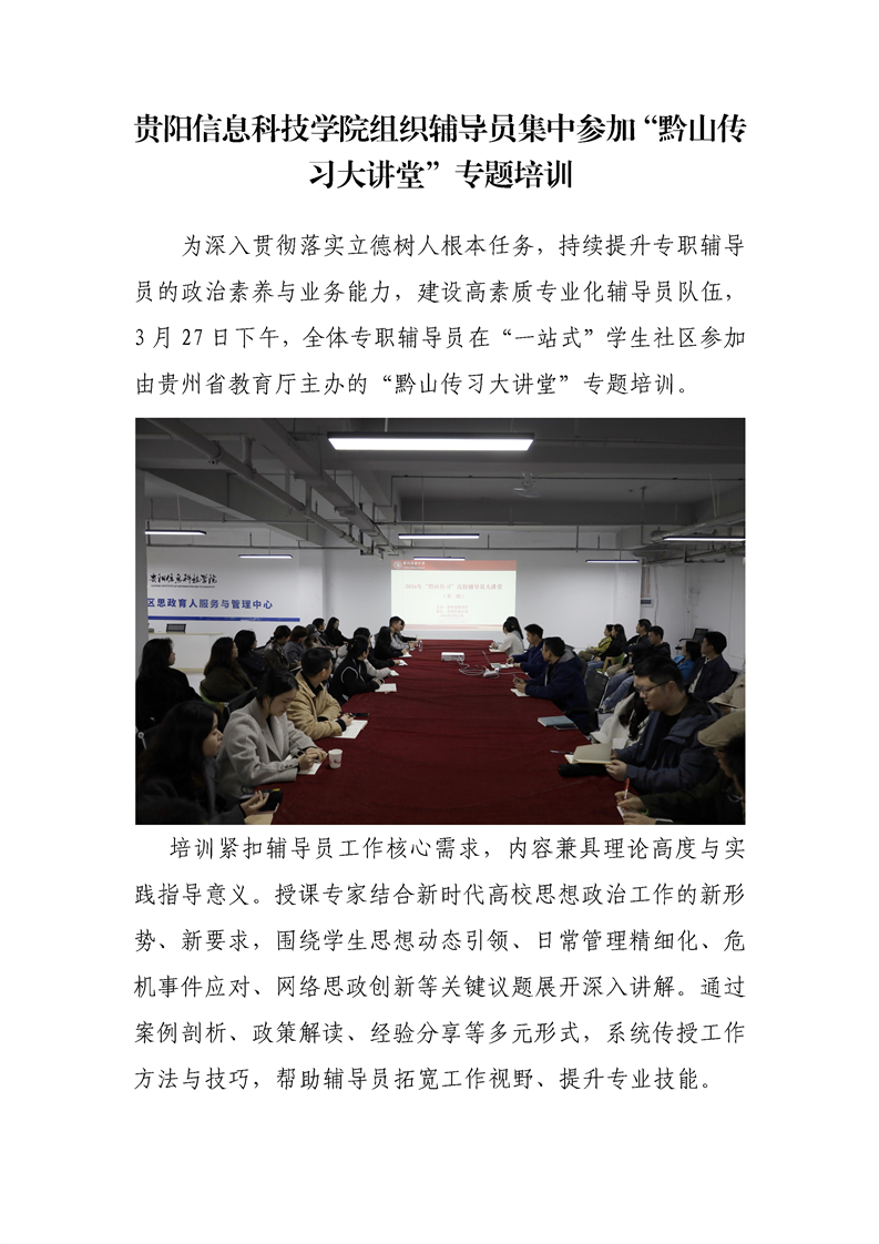 【学生社区】贵阳信息科技学院组织辅导员集中参加“黔山传习大讲堂”专题培训