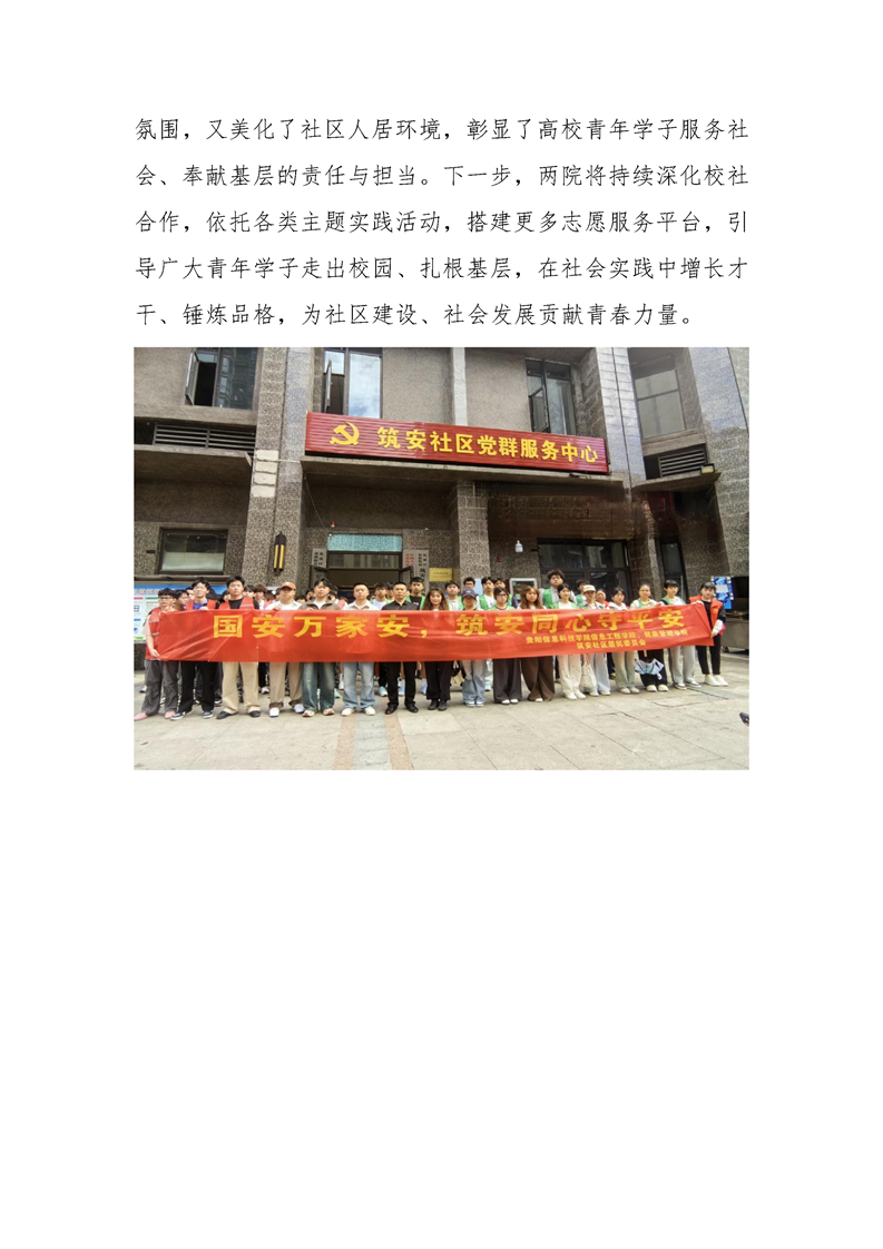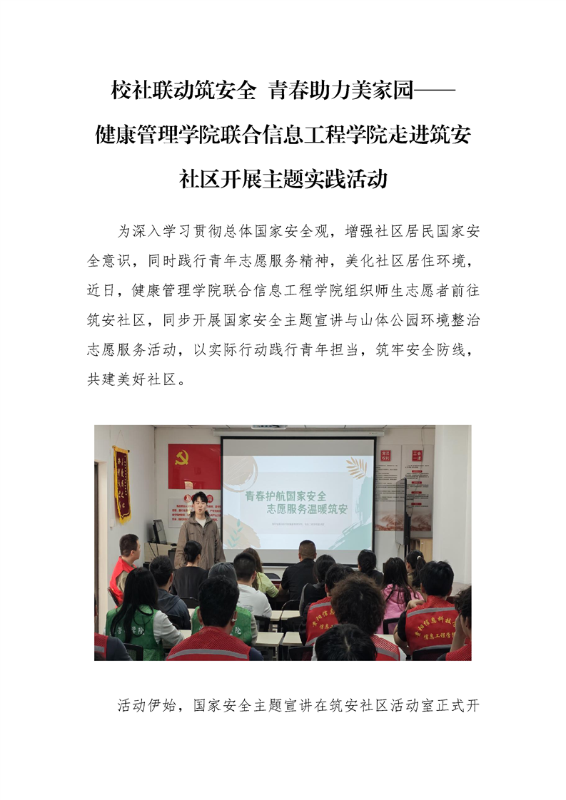 校社联动筑安全 青春助力美家园—— 健康管理学院联合信息工程学院走进筑安社区开展主题实践活动