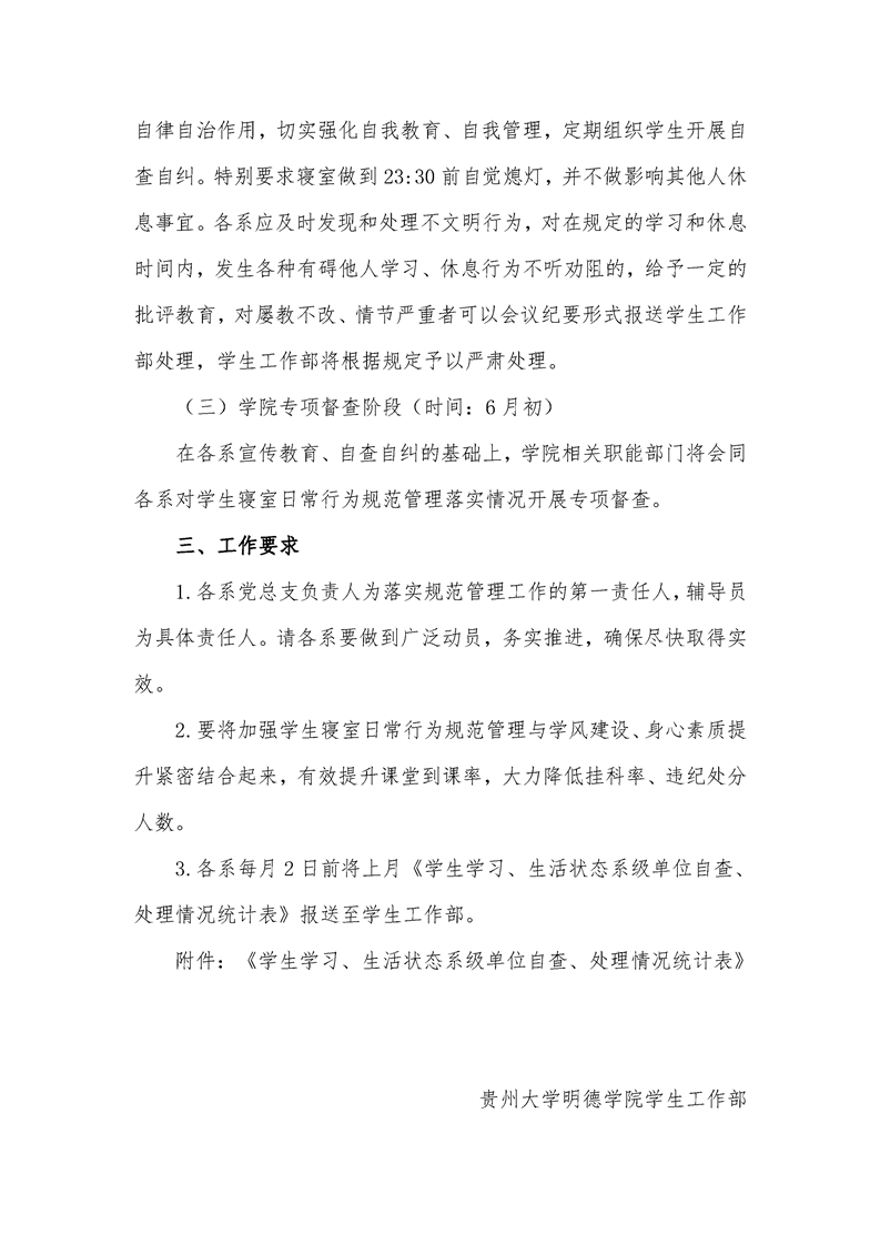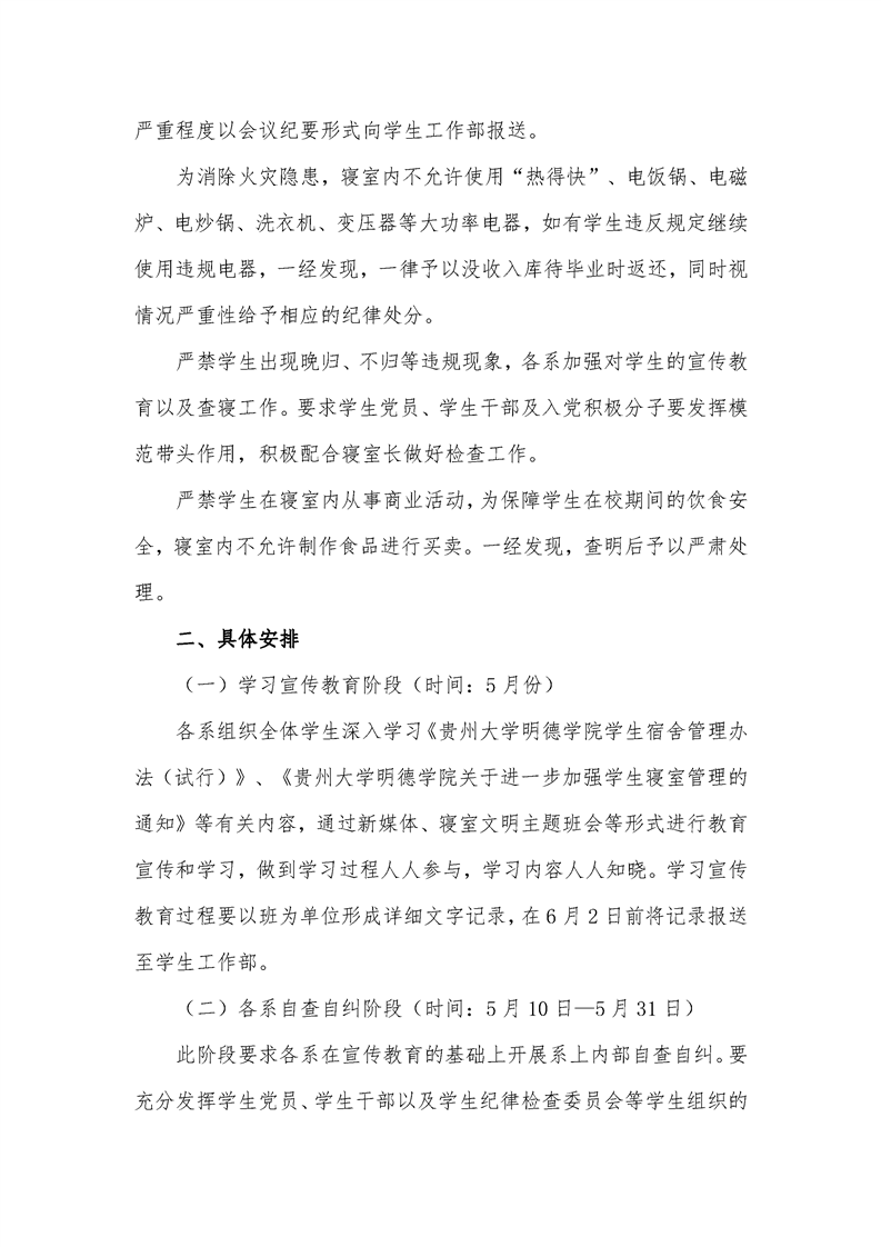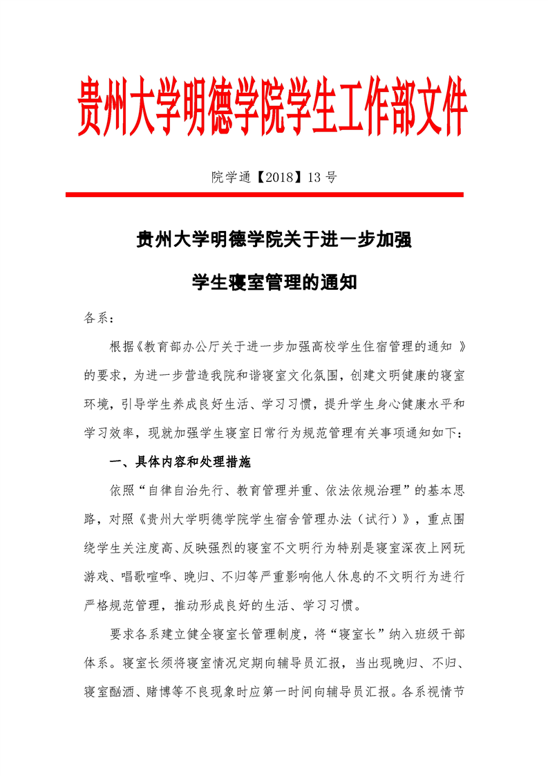 贵州大学明德学院关于进一步加强 学生寝室管理的通知