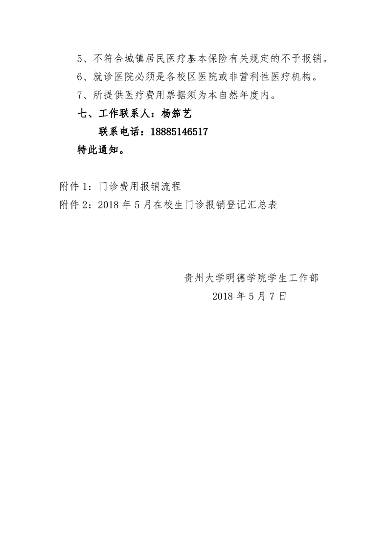 附件2:贵州大学明德学院2018年5月在校生门诊费用报销汇总表.xls