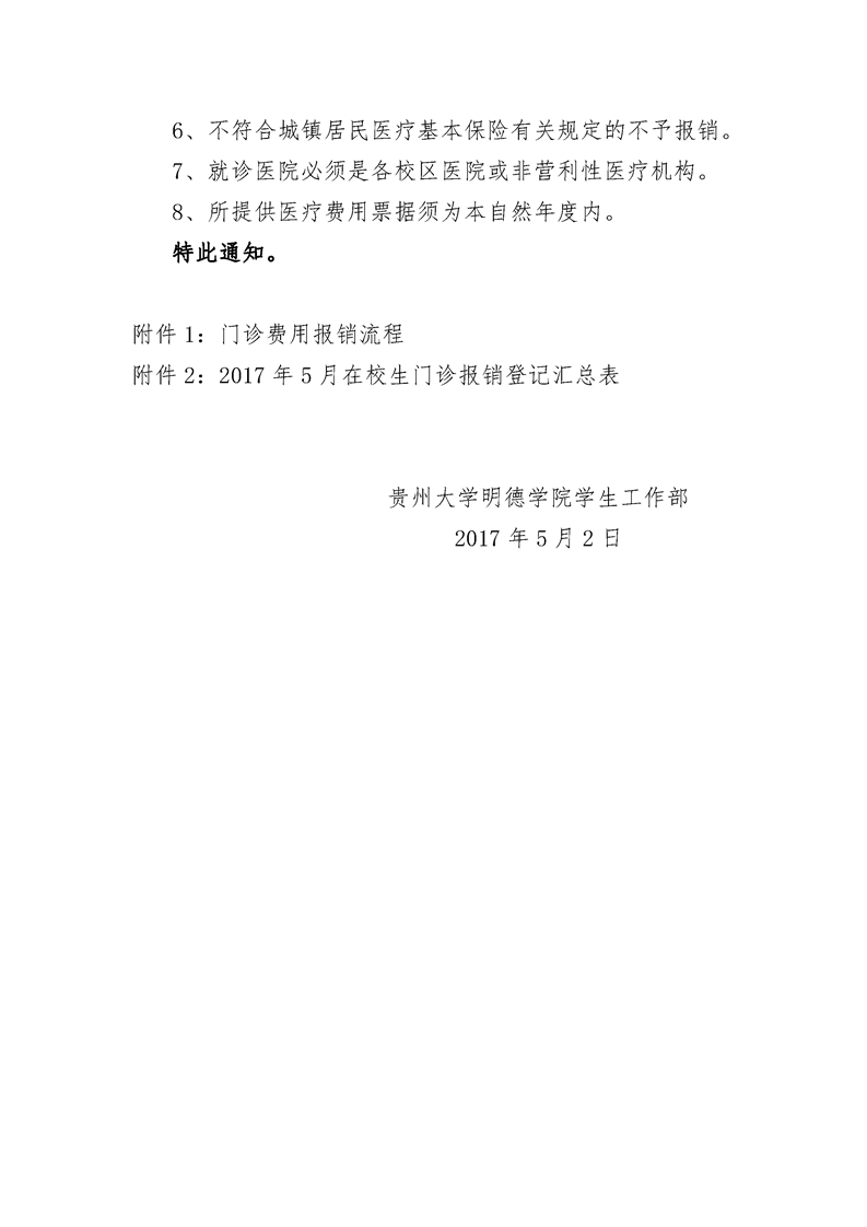 贵州大学明德学院学生门诊医疗报销实施细则