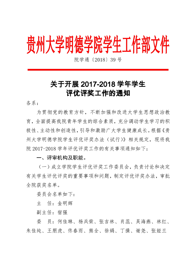 关于开展2017-2018学年学生 评优评奖工作的通知