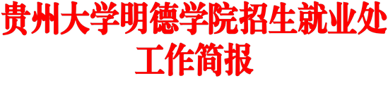 一、 2019年招生录取工作志愿者筛选及培训 根据学院志愿者报名情况,招生就业处于2019年7月1日进行志愿者筛选,最终确定35人为招生志愿者,并根据往年招生过程中家长、考生最关心的问题整理出“招生宣传20问”发放给招生志愿者用于学习。 二、 2019届毕业生就业追踪 我院2019届毕业生人数共计1582人,为帮助2019届毕业生良好就业,实现我院8月31日总就业率达到85%的目标,我处对2019届毕业生持续进行就业追踪。截止7月31日,我院2019届毕业生总就业率达73.45%。 三、 召开贵州大学明德学院2019年招生录取专项工作会议 为圆满完成我院2019年招生录取工作,2019年6月20日,学院召开了2019年招生录取专项工作会议。会议初期,宿强对招生录取工作小组进行详细讲解,即我院今年招生现场设录取组、秘书组、联络咨询组、安全保卫组,各组工作由院招生办公室统一进行协调。同时,为切实维护我院招生工作的正常进行,严肃工作纪律,保证网上录取现场的正常秩序,顺利完成招生录取工作,我院特对录取现场采取封闭式严格管理,进出录取现场必须佩带贵州大学明德学院招生工作证,与招生录取工作无关人员均不得进入录取场所。宿强在会议中指出,录取现场所有工作人员应自觉遵守工作纪律,服从统一管理,且录取期间必须佩戴由学院招生办统一制作的现场录取工作证件,证件分为通行证1(金底)、通行证2(红底)以及通行证3(蓝底)。 此外,我院招生录取工作分省内、省外批次进行,会议中强调:一要全面实施 “阳光工程”招生,确保公平公正。二是重视招生录取工作,提高责任心。三是强化人员知识、政策培训。四是严格履行相应职责,切勿触碰底线。 四、 2019年招生录取工作稳步开展 (一)招生电话咨询与联络 2019年高考成绩公布后,招生就业处电话每日接听百余个省内外咨询电话,主要是询问我院招生具体信息及往年录取数据,我处特设咨询祖为各位学生一一耐心解答。在录取工作开始后,我处联络咨询组第一时间联系预录考生核对相关录取信息。 (二)网络咨询 招生就业处在招生录取期间建立2019年考生咨询群、2019级新生QQ群,第一时间为新生及家长答疑解惑,其中包含介绍学校办学情况、学生住宿费及学费、新生入学须知、新生录取查询及通知书发放等事宜。 (三)录取情况 截止至2019年8月1日,我院已完成贵州省417名艺术考生、3311名普通考生录取工作。另外,省外招生录取工作也稳步进行中,并已完成海南省、河北省、河南省、江西省、陕西省、四川省、云南省、辽宁省、山东省、广西壮族自治区、重庆市等11个省(自治区、直辖市)招生录取工作。 贵州省预科生录取工作将在第二批本科院校录取结束后按照招生计划实施录取。 (四)录取通知书发放 2019年7月30日,我院首批511份新生录取通知书已全部发出。发放首批录取通知书的新生包括:贵州省、河南省、海南省、江西省、四川省等省份统招本科美术类新生及河南省、广西壮族自治区、山东省、河北省、辽宁省的统招本科文理类新生。同时考生也可通过贵州大学明德学院官网查询录取通知书邮件单号。
