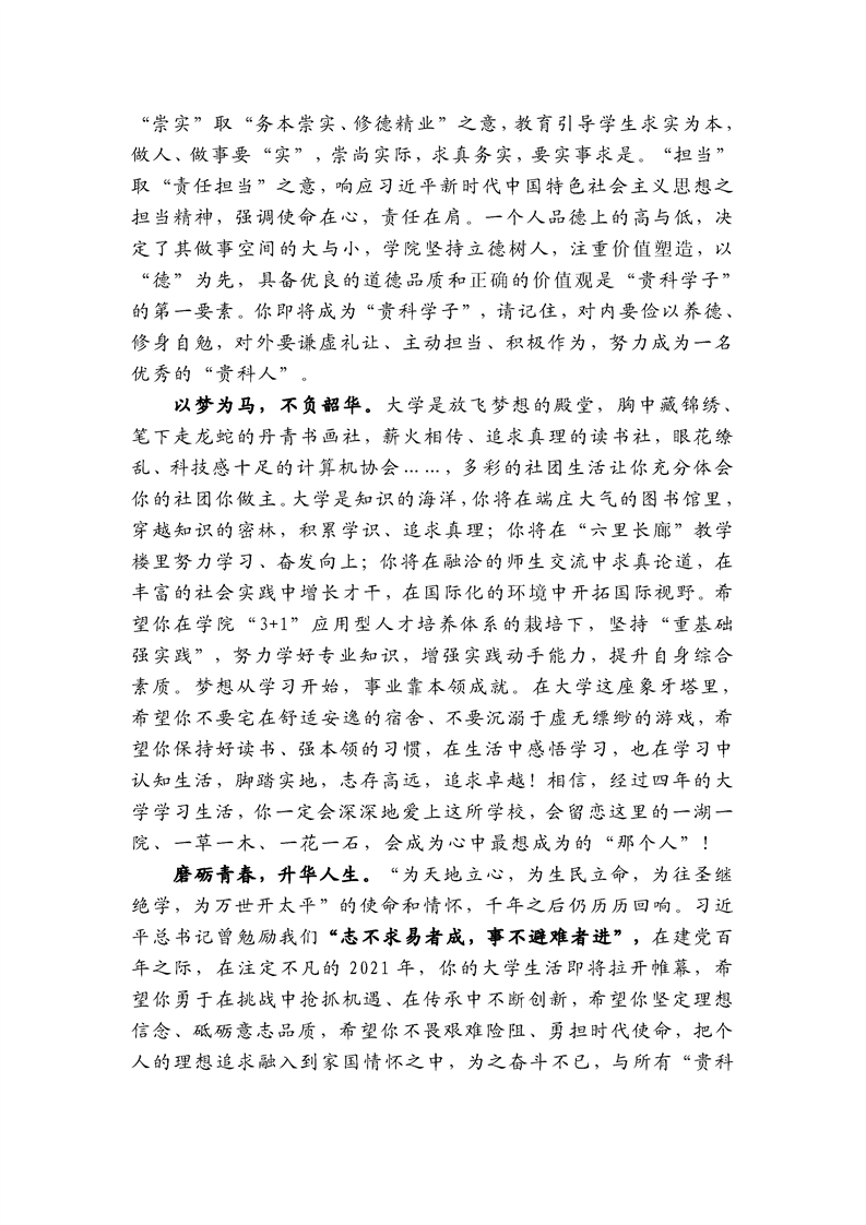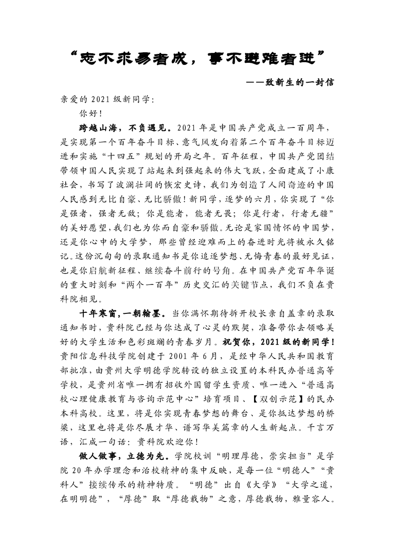 2021级新生入学指南(致新生的一封信、入学须知、学生资助政策简介、《普通高校新生应征入伍宣传单》)