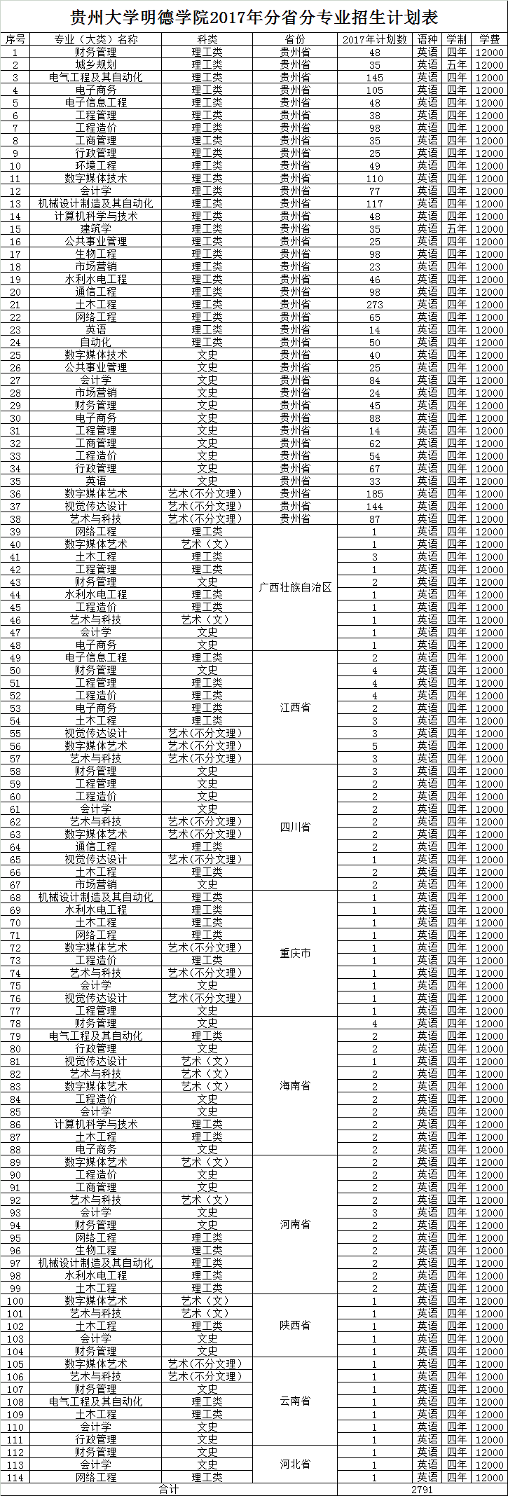 贵州大学明德学院2017年分省分专业招生计划表.xlsx